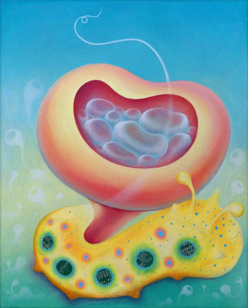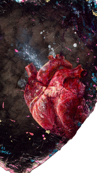 黃士綸對於符號學與觀念藝術的興趣與想法,作品以解剖學上的「心臟」為主題,對比外框心形畫布常見的「愛心」符號,構成一種視覺與文化語意間的衝突與對話。