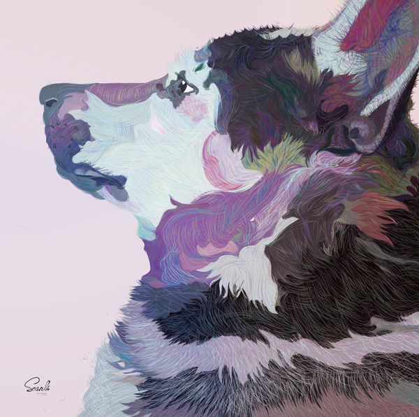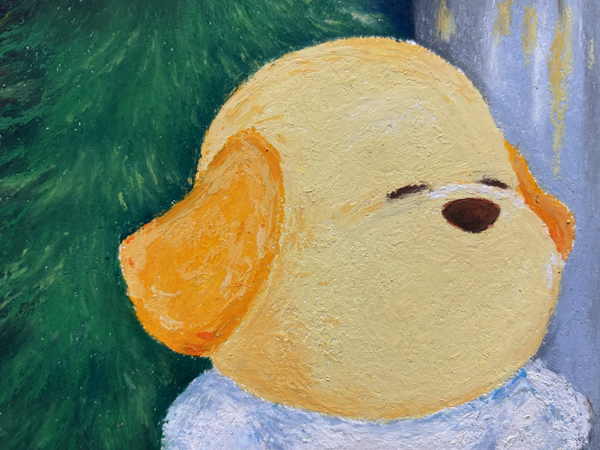《阿狗》是隻聰慧、沉靜,卻帶著一點生活受傷的狗。 畫中毛絮層層交織,如同歲月緩緩飄落,這是一幅肖像畫,也是一場以毛為語的心靈共鳴。