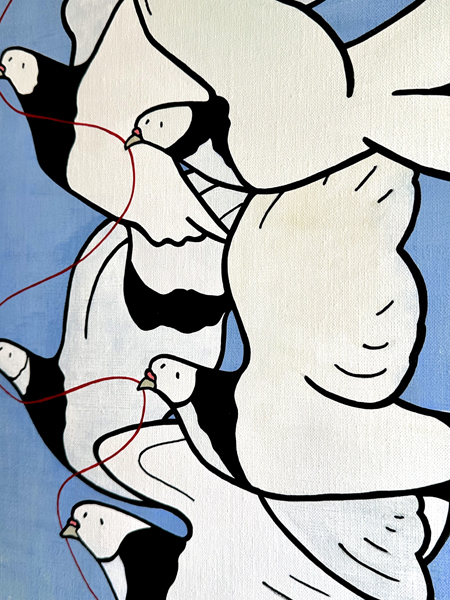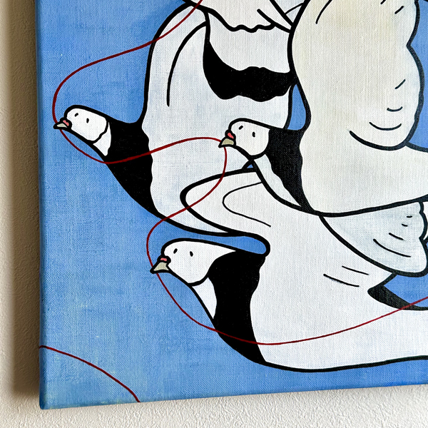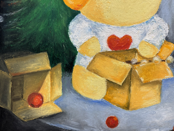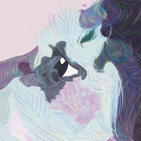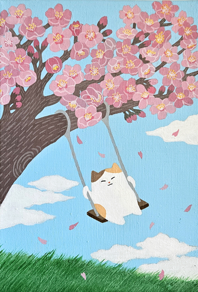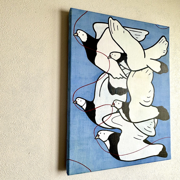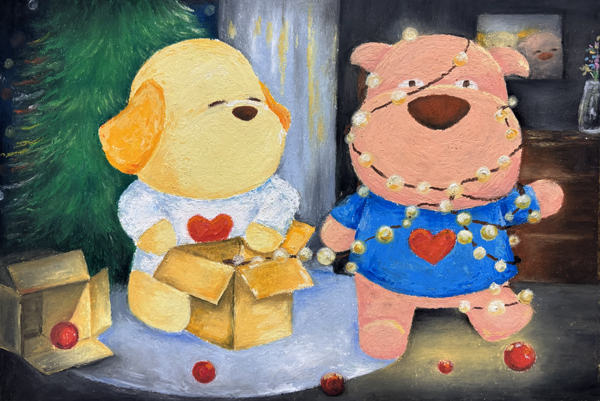ふわっと透明な空間に寄り添う優しいぬくもりと安心感を描いた作品。Soft airy space with gentle snuggling warmth and quiet reassurance.