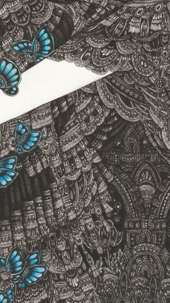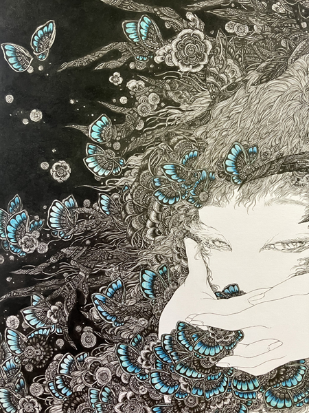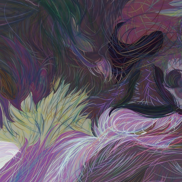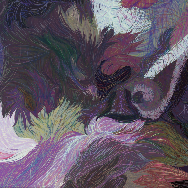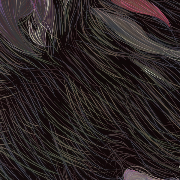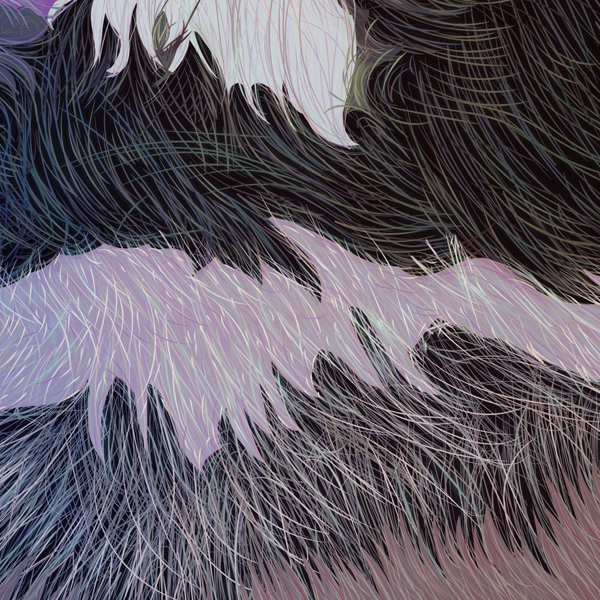 一筆一筆模擬毛髮的質感與流動,沒有既定方向,只專注於「畫毛」本身。