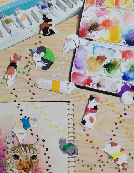 源於日常與十多隻貓共處的生活,家中毛絮如雪花般四處飄散。