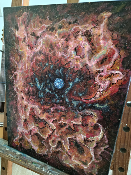 現在回頭看,雖然已經走到很不一樣的方向了,但這作品還是那段時間裡最耐看、也最有畫面感的一幅。很多當時的想法、試探、卡關,也有很多缺點,但都在作品裡誠實的呈現。 -