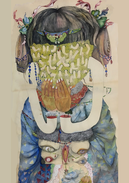 顔をメインに、且つあえて顔を描きすぎない表現にこだわりました。見えている瞳や口元の一部から、あなたは、私は、どのように感じたか。どのような感情を受け取ったかを考えていただけますと幸いです。