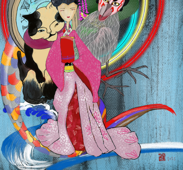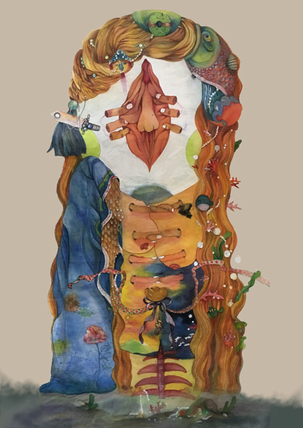 貪心的收藏者,人們對於財富取之不盡,永遠的不滿足,如同填大海的倉庫是永遠都不會填滿的。因此人們的貪心凝聚出人魚公主形象來專門管理財物,掏空只剩下骨架的徒其形而無血肉的空洞軀殼。小美人魚的故事中,喜愛收集人類的物品並藏在一處洞穴中,最後也因人類而亡而衍生出來的故事。黃髮在東方是象徵異域人的髮色,因此人魚公主而得名。水與藍色對研究者來說是陰性的象徵,大量的財寶也象徵在東方的社會中女性通常掌管家中的財物,因此貪心凝聚出的是女性的形象。