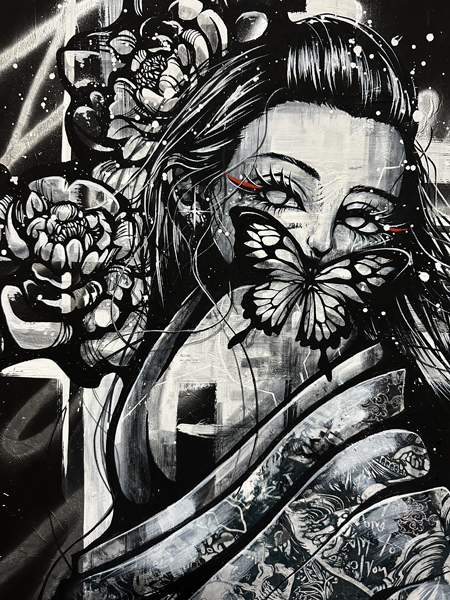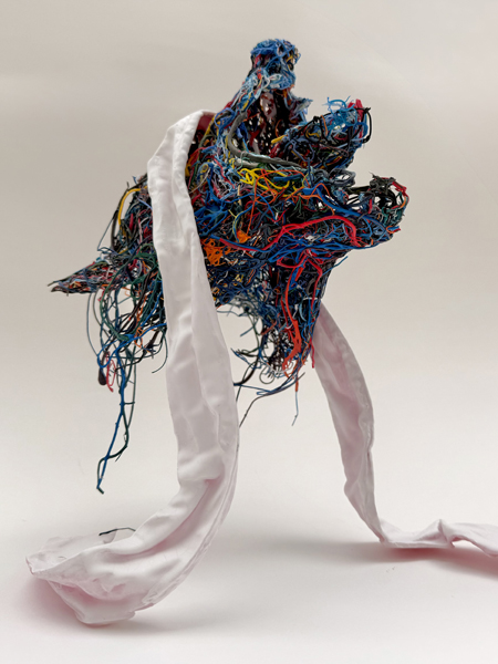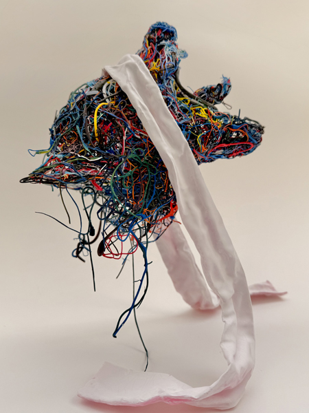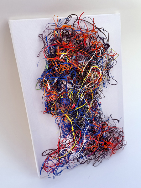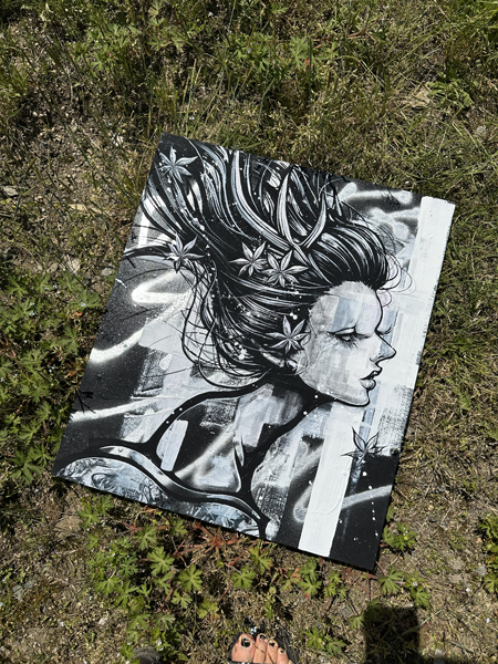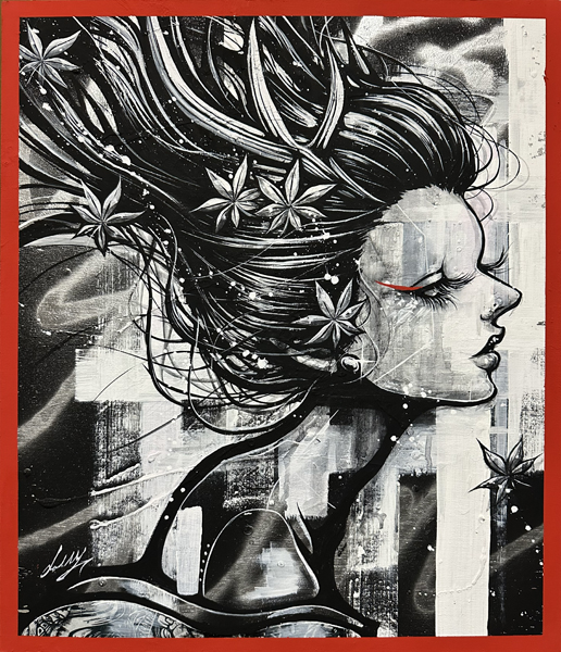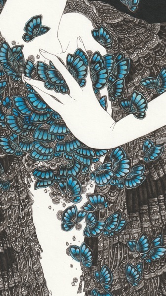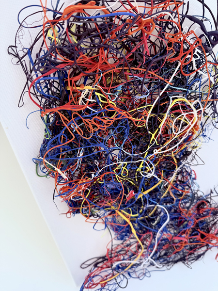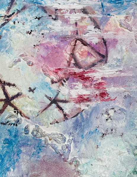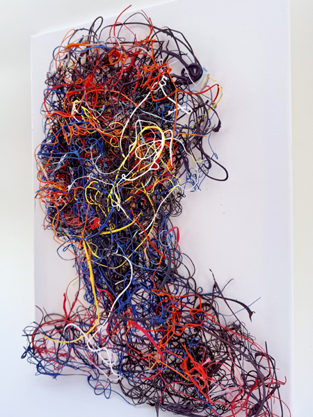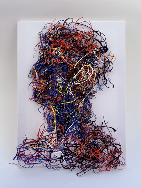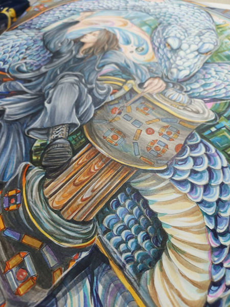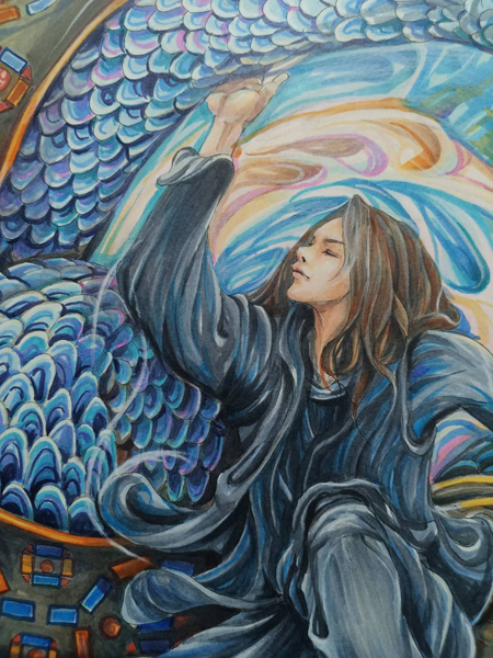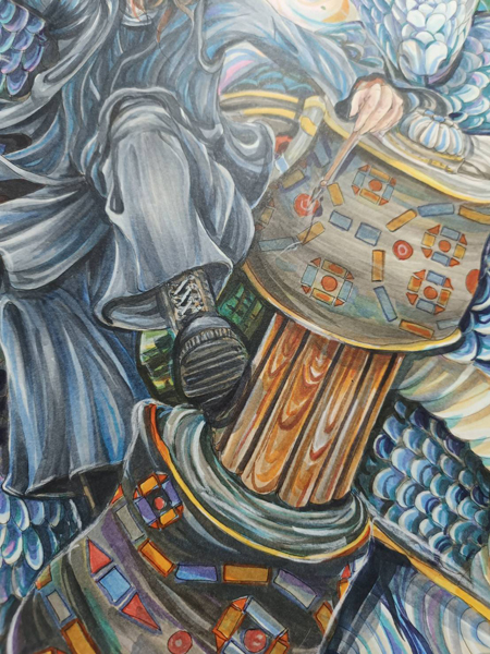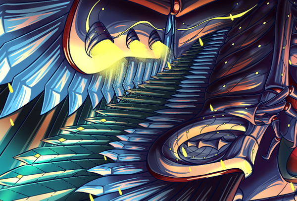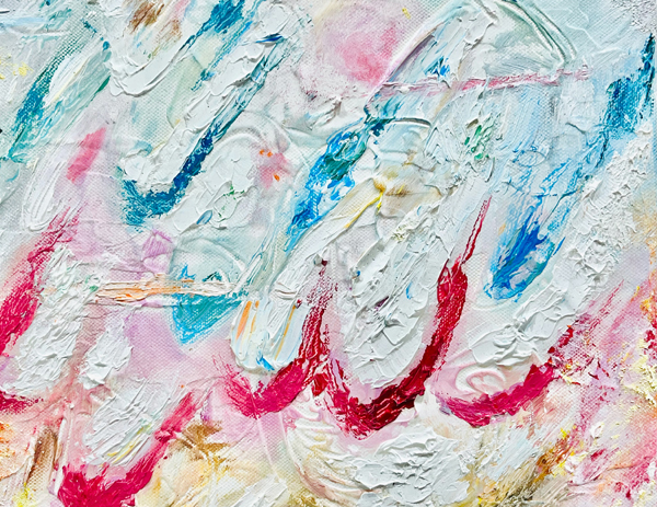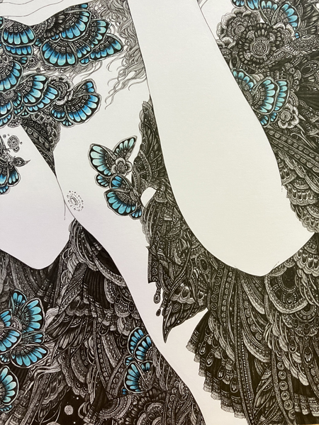 翅膀、羽翼的形象為始,以強烈的筆觸進行層次堆疊,輔以鮮明色彩進行勾勒,期望跳脫以往羽毛之於白色系的印象,讓這雙翅膀得已煥發重獲新生,重新塑造成獨屬於我的雙翼。