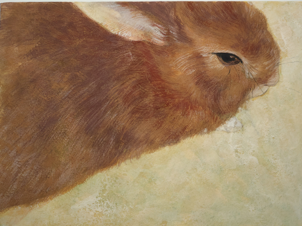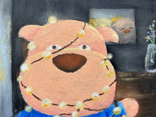 作品描繪兔子生命後段的兩個狀態:盛年時如光般擴張,象徵力量與靈魂的昇華;晚年則以柔和粉色包覆,呈現安靜而溫暖的離別。透過光與色的轉換,表達對生命循環的理解與祝福。