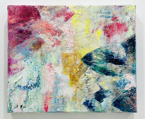 以身邊喜愛之物的顏色為底,在無任何預設的情況下創作,是場關於色彩的試驗,亦是完全隨心的創作,更是件未知的作品。所有都是那樣的不確定,正因如此一切皆有可能。