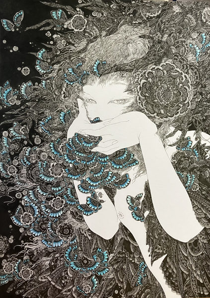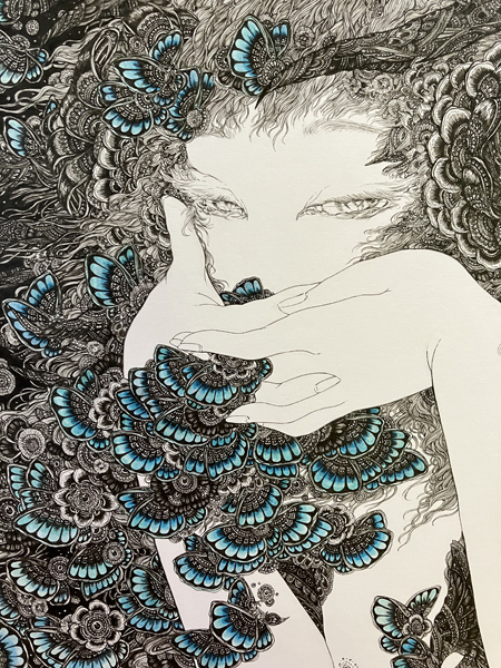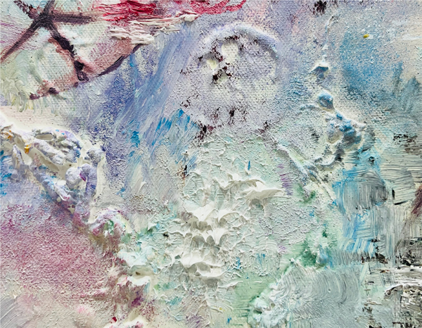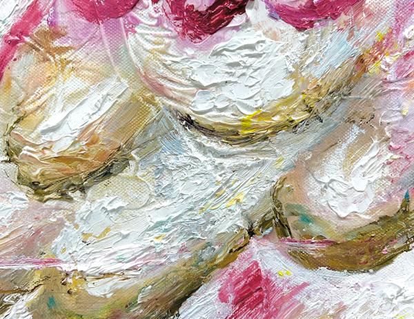 這過程像是冥想,也像與記憶對話,將情緒沉入筆尖,再一層層堆疊上去。 -