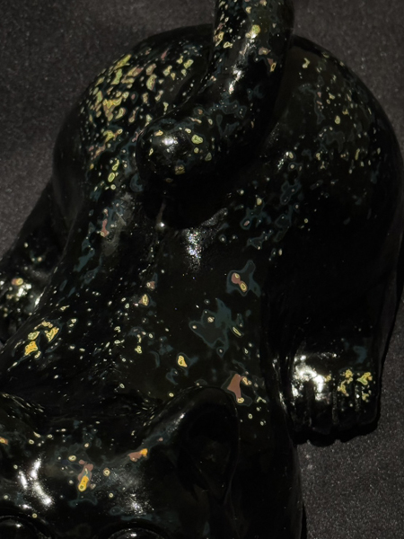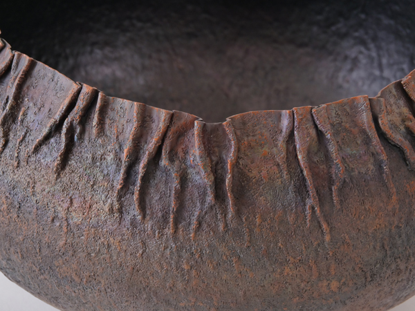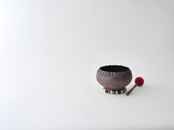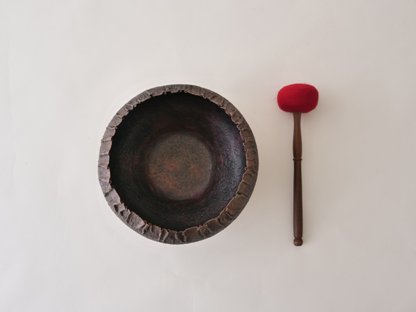 本作品以「苦」字鐫於錘頭,運用金工傳統鍛敲技法,歷上千萬次的敲擊鍛升,方成一只頌缽。敲擊所留下的文字印痕,猶如每一次所經歷的困境與挑戰,皆是推動我持續向上攀升的養分與動力,更是內在意志不斷淬鍊的證明。轉化內心經歷的事件與掙扎,藏匿在每一記錘痕裡,最終隨著缽聲迴盪而出,迴響在每個傾聽者的心中。